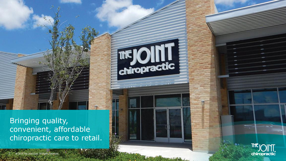 3 © 2018 | NASDAQ: JYNT | thejoint.com 3 © 2018 The Joint Corp. All Rights Reserved. Bringing quality, convenient, affordable chiropractic care to retail.
