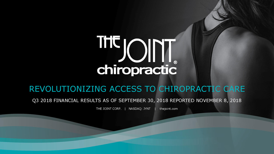 REVOLUTIONIZING ACCESS TO CHIROPRACTIC CARE THE JOINT CORP. | NASDAQ: JYNT | thejoint.com Q3 2018 FINANCIAL RESULTS AS OF SEPTEMBER 30, 2018 REPORTED NOVEMBER 8, 2018