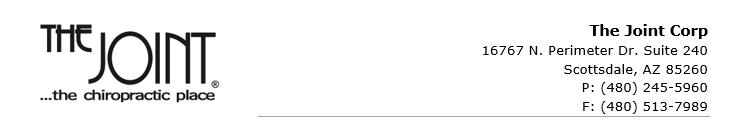 This letter agreement (this “Letter Agreement”) sets forth the terms and conditions of your compensation package and your at-will employment arrangement as President and Chief Executive Officer (“CEO”) of The Joint Corp. (the “Company” or “The Joint”). After you have reviewed the terms of this Letter Agreement, please sign below to signify your acceptance.