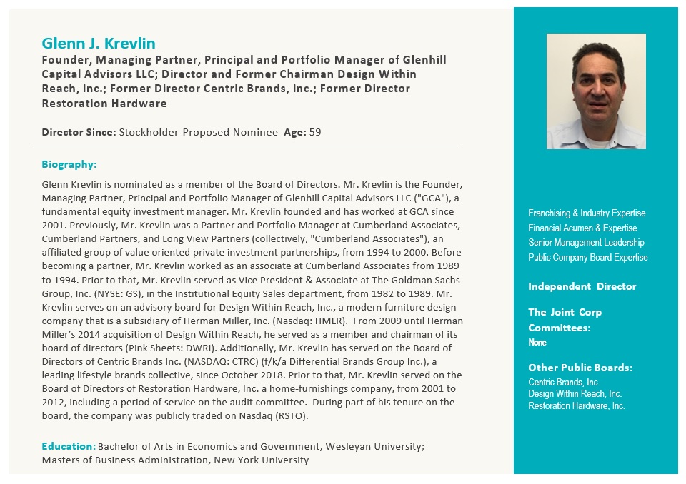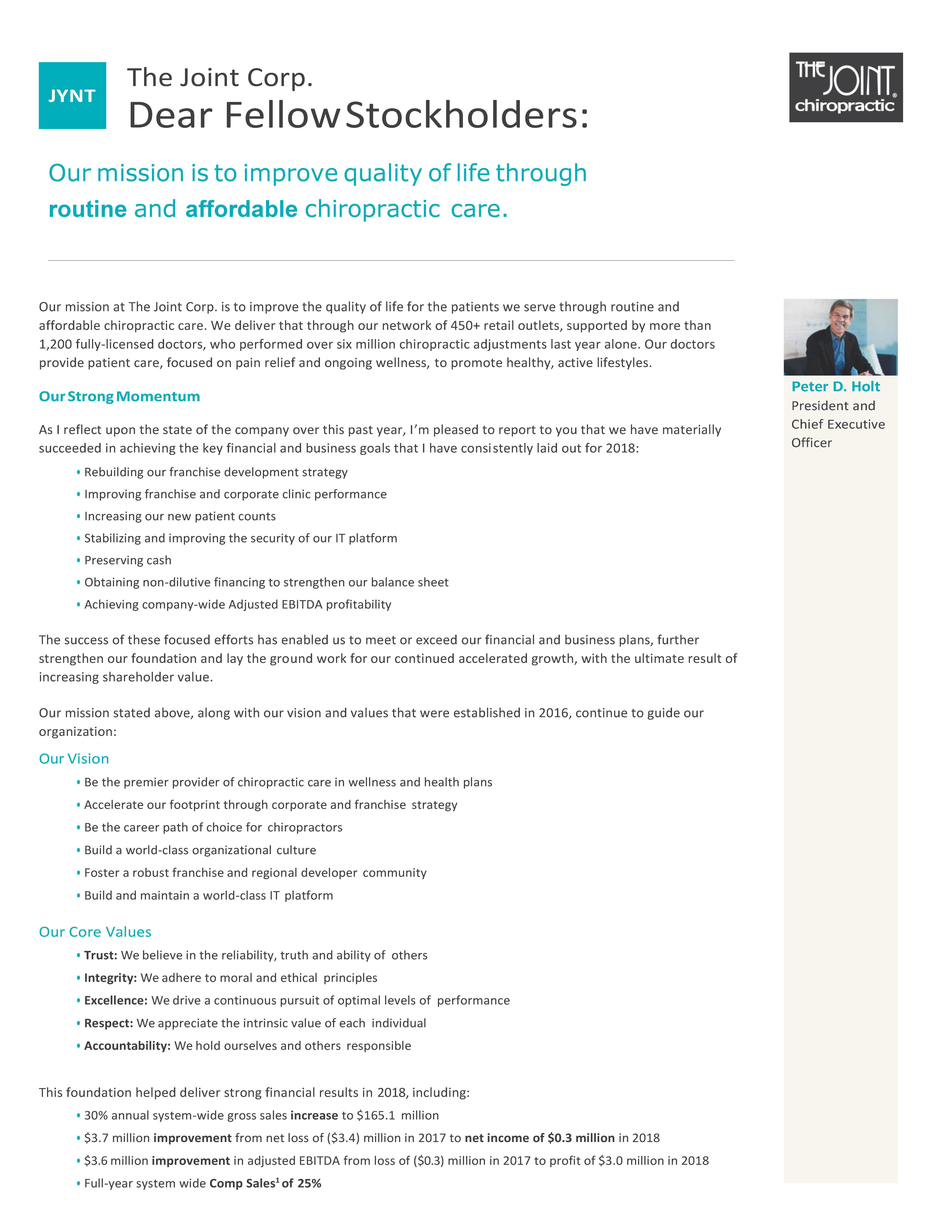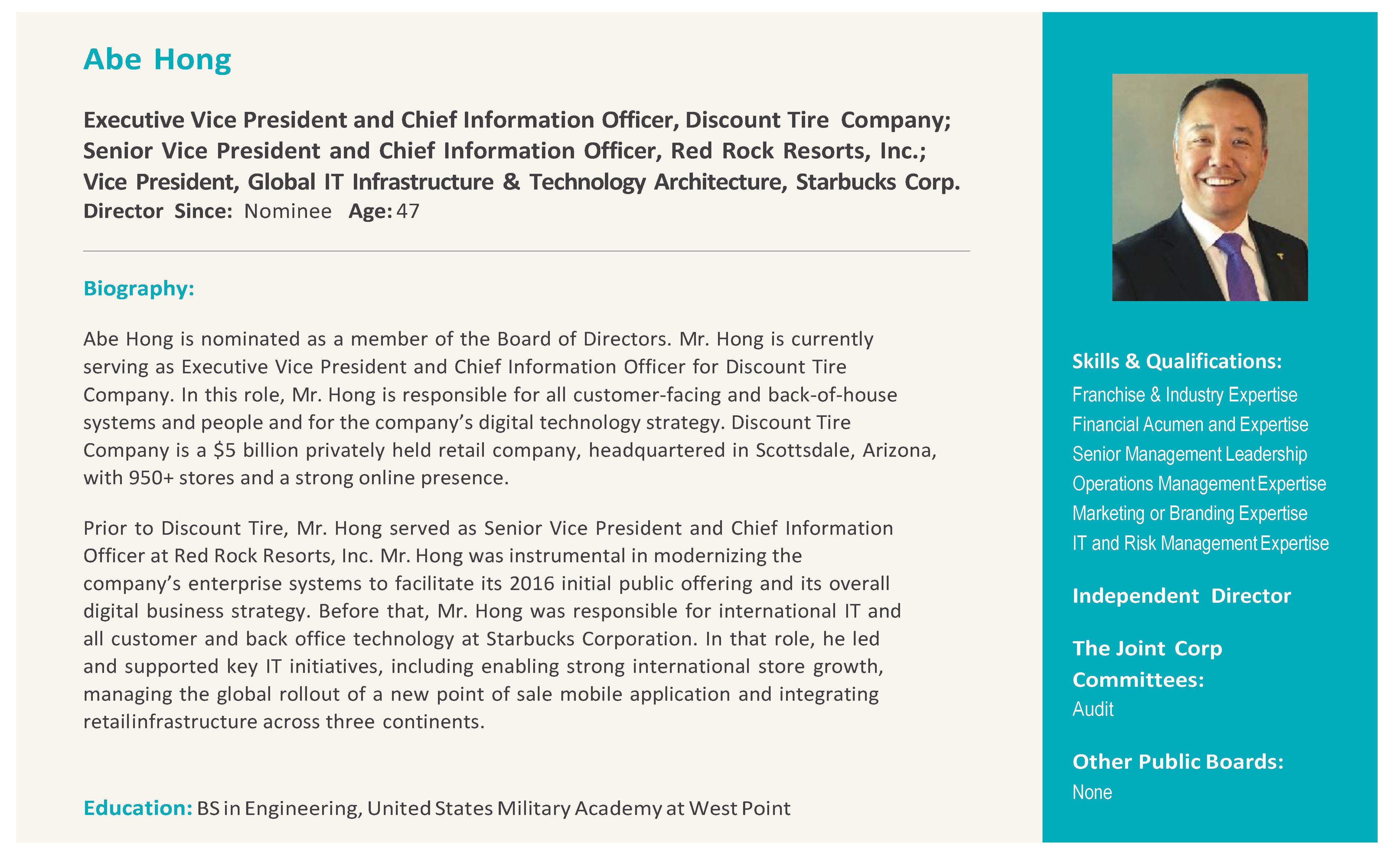 In this proxy statement, “we,” “us,” “our” and the “Company” all refer to The Joint Corp.