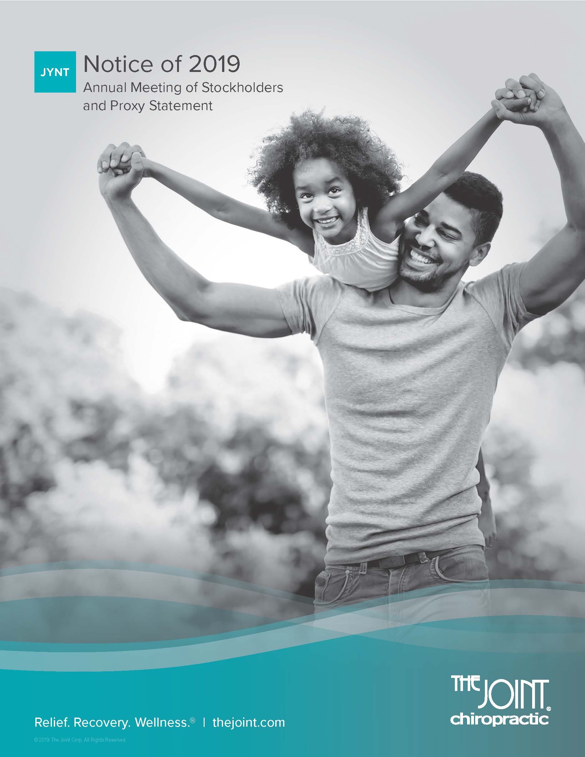 The Board of Directors of The Joint Corp. is soliciting proxies to vote shares of our stock at the 2019 Annual Meeting of Stockholders (the “Annual Meeting”) to be held on Friday, May 31, 2019 at 10:00 a.m. Mountain Standard Time at our executive offices located at 16767 N. Perimeter Drive, Suite 240, Scottsdale, Arizona 85260.
