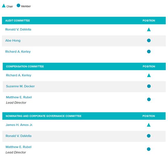 | • Audit (Chair) • Nominating and Governance | ||||||||