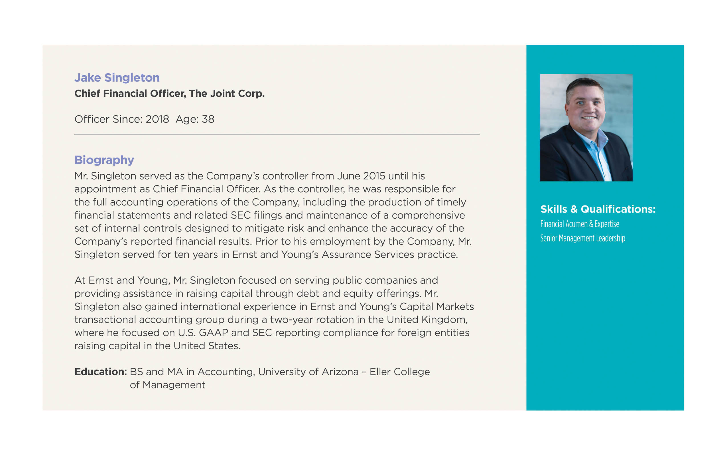 In this proxy statement, “we,” “us,” “our” and the “Company” all refer to The Joint Corp.