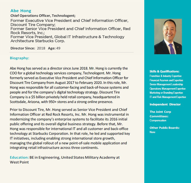 With the Board’s guidance, we are more committed than ever before to our mission and vision. We are more focused on our patients. We are more aligned with franchisees and company employees. And, we are better positioned to deliver operational excellence at great clinics that satisfy patients today and over the years to come. The confidence that you have placed in us is humbling and gratifying as we continue to build The Joint brand and revolutionize access to chiropractic care across this nation.