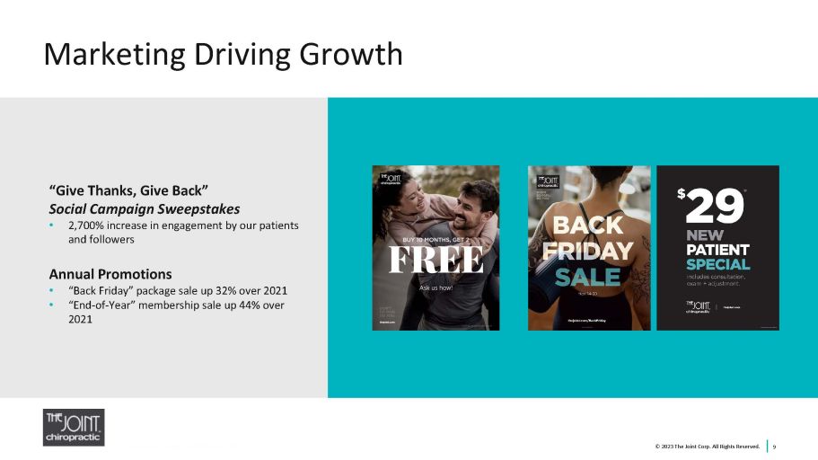 Top Franchise Recognition... Again 8 © 2023 The Joint Corp. All Rights Reserved.