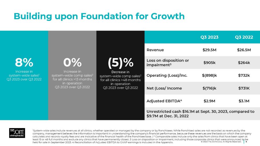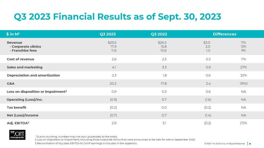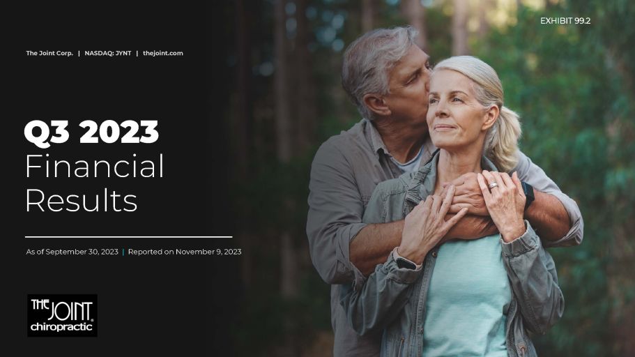 Q3 2023 Financial Results As of September 30, 2023 | Reported on November 9, 2023 The Joint Corp. | NASDAQ: JYNT | thejoint.com EXHIBIT 99.2