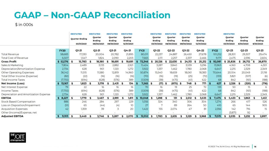 GAAP – Non - GAAP Reconciliation $ in 000s © 2023 The Joint Corp. All Rights Reserved. 16