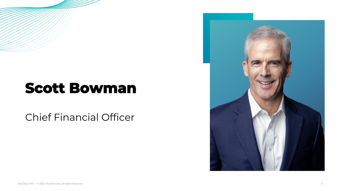 NASDAQ: JYNT | © 2025 The Joint Corp. All Rights Reserved. Scott Bowman Chief Financial Officer 9