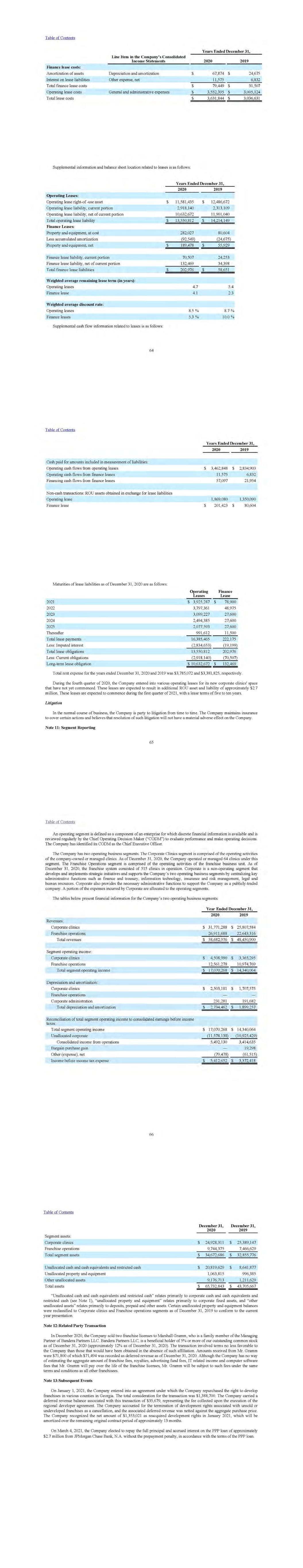 2 We have also offered Location Franchises since 2010. Location Franchises are offered under a separate Disclosure Document referred to as the “FDD for Location Franchises”. As of December 31, 2020, we have cumulatively sold a total of 932 Location Franchises. Location Franchises are granted for the owner and/or management of a Clinic. A more detailed description of the Location Franchise is provided later in this Item. We currently own, operate and/or manage several Clinics in Arizona, California, Georgia, New Mexico, North Carolina and South Carolina. These Clinics operate under our Marks, but are not subject to the terms of any franchise agreements. However, in some instances we have entered into Management Agreements with P.C.s (see explanation below) who own the Clinics that we manage. We acquired some of these Clinics from franchisees in late 2014 and early 2015, and developed others on our own. We intend to continue to own, build, acquire, operate and/or manage Clinics throughout the U.S., and possibly other countries. We are not currently engaged in any line of business other than: (i) offering Location Franchises and franchises for Regional Developer Businesses; and (ii) owning, operating and/or managing Clinics as described above. Regional Developer Businesses We offer qualified applicants the opportunity to sign a regional developer agreement (referred to as a “Regional Developer Agreement” or “RDA”) for purposes of establishing and operating a Regional Developer Business, including the solicitation of potential purchasers of Location Franchises within a defined geographic development area (“Development Area”). If we grant you a franchise for a Regional Developer Business, you must sign a Regional Developer Agreement. Our current form of Regional Developer Agreement is attached to this Disclosure Document as Exhibit B. As Regional Developer, you will (i) solicit, recruit, screen and interview prospective Franchisees for us (“Sales Services”); (ii) help us identify and secure sites for Location Franchises (“Site Services”); and (iii) provide additional operational, training and field support to each Franchisee in your Development Area both before and after they open their Location Franchise (“Support Services”). You will share in a portion of some of the fees paid to us by the Franchisees in your Development Area in exchange for performing your duties under the RDA. You will receive 50% of the initial franchise fees (less referral fees and sales commissions, renewal fees and transfer fees paid by Franchisees) and 42.957% of royalty fees paid by Franchisees. If we provide Sales Services on your behalf (with your agreement) then your commission on initial franchise fees will be reduced to 25%. Your right to promote Location Franchises in your Development Area is non-exclusive. Therefore, we may recruit prospective Franchisees and sell Location Franchises in your Development Area. However, you will still earn a portion of the initial franchise fee for Location Franchises that we sell in your Development Area as long as you comply with the requirements of your RDA. We will turn over to you all of the sales leads that we receive from prospects looking to acquire a Location Franchise in your Development Area so that you can pre-qualify the candidate. While we rely on you to solicit, screen and interview Franchisee candidates and to present us with those applicants whom you pre-qualify using our criteria, we make the final decision on whether we will sell a franchise to the candidates you present. If we approve the candidate, we and the candidate will sign a Franchise Agreement. Our current form of Franchise Agreement is attached to our separate FDD for Location Franchises. You will not be a party to the Franchise Agreements we sign. However, you will provide a variety of Site Services and Support Services to the Franchisees in your Development Area. If you are a business entity, the RDA requires you to designate the individuals who will be responsible for your Regional Developer Business. The Owner(s) of the Regional Developer Business, or others you designate to operate the Regional Developer Business, must meet our qualifications and must be approved by us. Your current and future Owners and their spouses must sign an Owner’s Guaranty and Assumption of Obligations (“Guaranty”) (see Exhibit 4 to the RDA) guaranteeing your performance and binding themselves individually to certain provisions of the RDA, including the covenants against competition and disclosure of confidential information, 3 restrictions on transfer and dispute resolution procedures. As a Regional Developer, you must open at least 1 Location Franchise. You must sign our current form of Franchise Agreement and pay us our then-current initial franchise fee for Location Franchises at the same time that you execute your RDA. The estimated total initial investment necessary to begin operation of your required Location Franchise is contained in our FDD for Location Franchises. You will sign a separate Franchise Agreement for each Location Franchise that you establish under the RDA. Each Franchise Agreement shall be our then-current form of Franchise Agreement, the terms and conditions of which may vary materially and substantially from the terms and conditions of the Franchise Agreement you sign for your first Location Franchise. We may periodically make changes to the systems and standards for your Regional Developer Business. All Regional Developer Businesses must be developed and operated in accordance with our specifications, standards, policies and procedures, which will be communicated to you via our confidential Manual for Regional Developer Businesses (“Manual for RDs”) or other written communications and directions from us. Market and Competition for Regional Developer Businesses Regional Developer Businesses compete with other franchisors, regional developers, sales brokers a