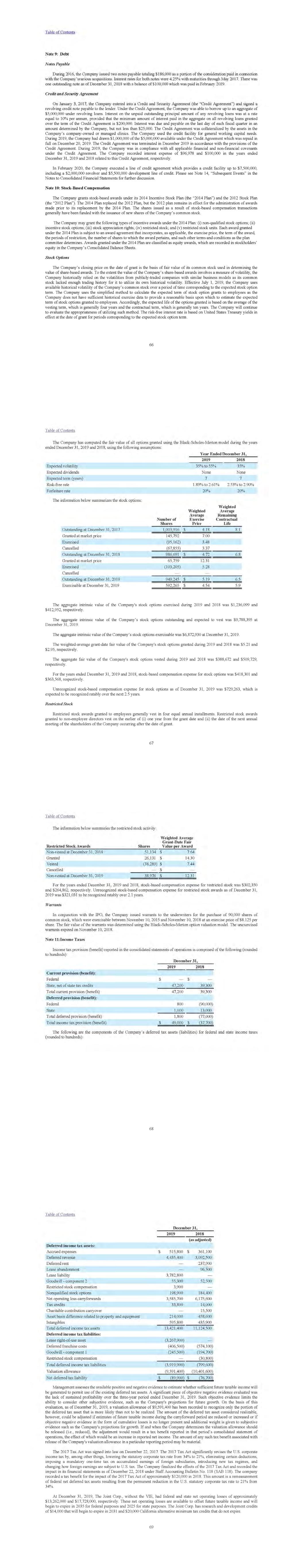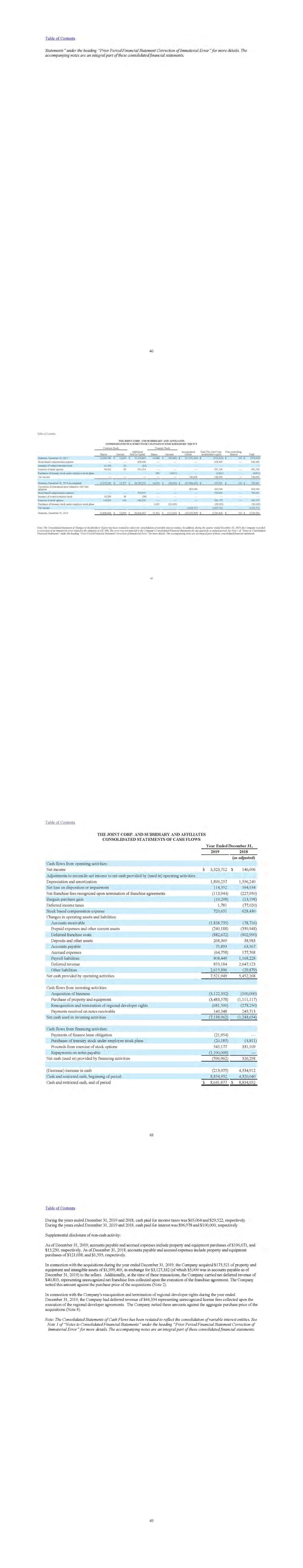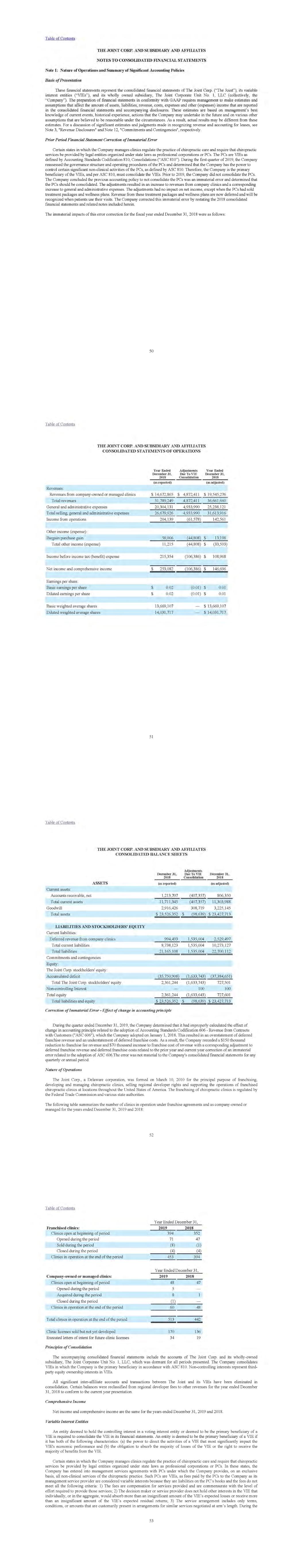 The Joint Corp. 10-K -Annual Report, Item 8 Financial Statements and Supplementary Data For the Fiscal Years Ended December 31, 2019 and 2018